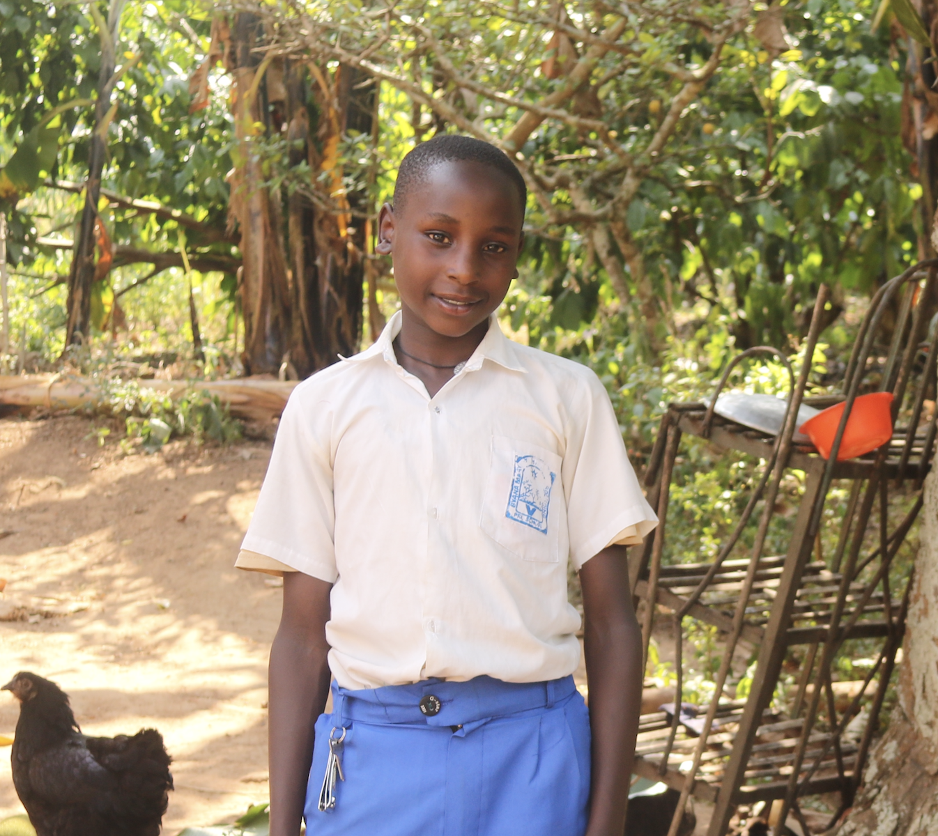 Using the knowledge he gained, 14 year old Alifunce was inspired to explore income-generating activities, a key component that all students learn during their participation in Asante Africa’s programs. He wisely saved a portion of his pocket money, amounting to 30,000 Uganda shillings, and also solicited support from his uncle to invest in his idea to launch a poultry project. He purchased 5 hens, which have since grown to a flock of over 25 birds, making the project a profitable and successful venture. Feeling motivated with his success he decided to establish a small tomato garden inspired by his neighbor’s successful cultivation. The neighbor generously provided tomato seedlings in support of Alifunce’s endeavors. His entrepreneurial spirit did not stop there, Alfunce also initiated a goat project with the help of his grandmother. The grandmother supported him with 2 goats and since then the herd has grown to 5.
